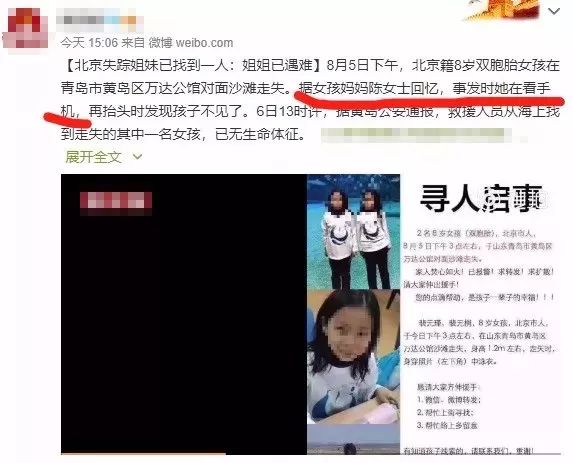 公众的跟进速度也很快——依然有“暑期海边游玩的注意事项”“孩子溺水时你未必会发现”等等;与此同时,还有对母亲的指责——这位痛失爱女的妈妈说,“当时自己正在看手机”: