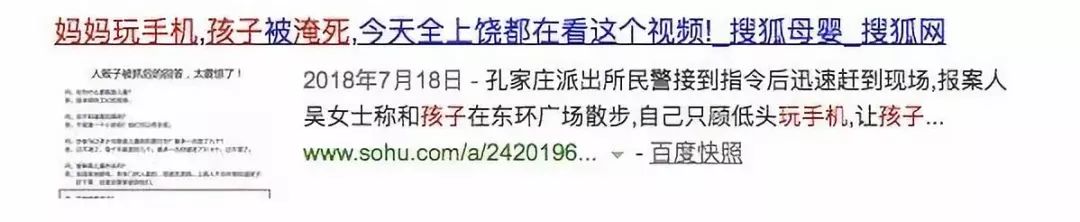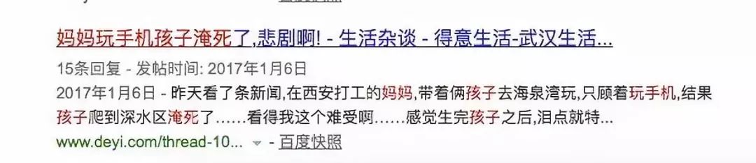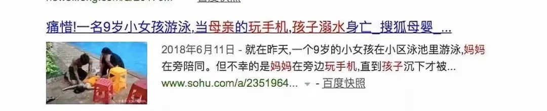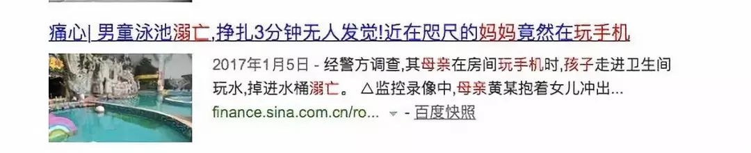 在网上查找相关的关键词,发现“妈妈玩手机”的悲剧并不是孤例:
