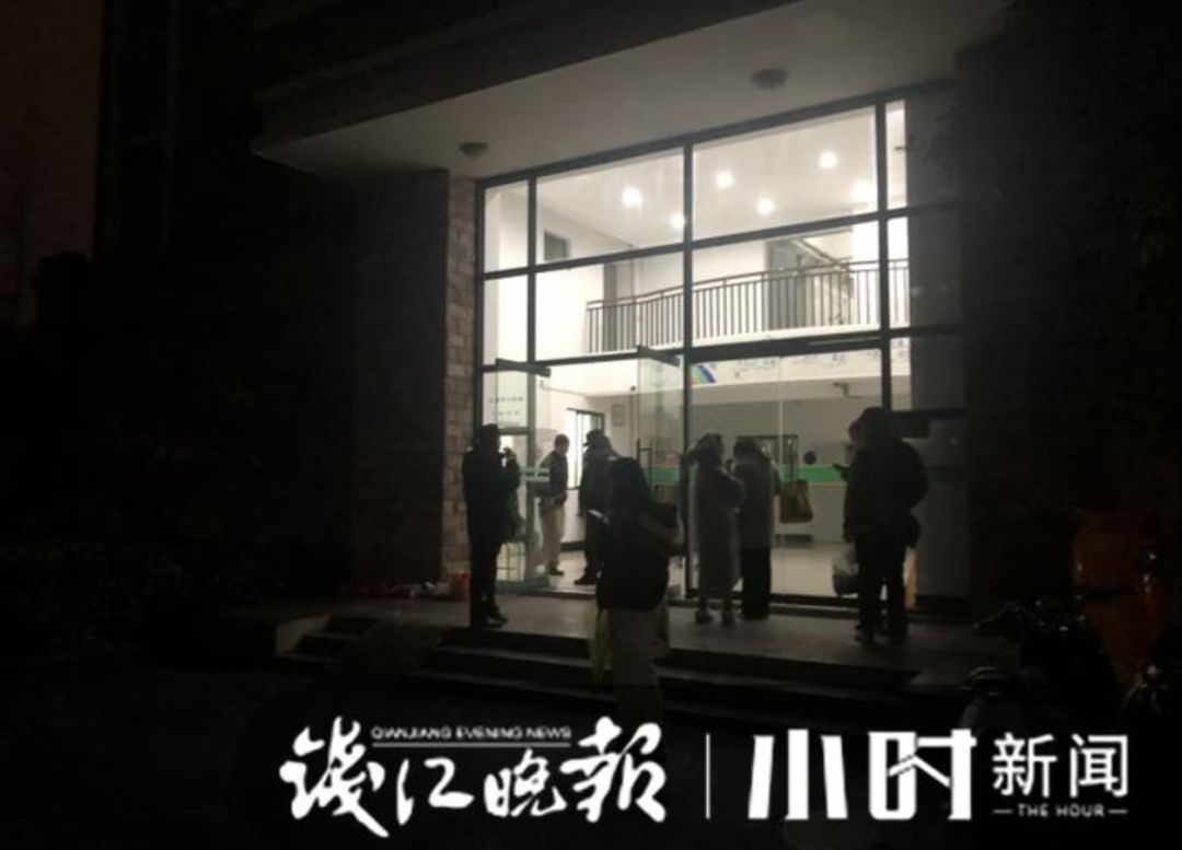 宿舍楼里,保安、维修工人、保洁阿姨不停进进出出。“再等等,过一会儿就可以进去了。”
